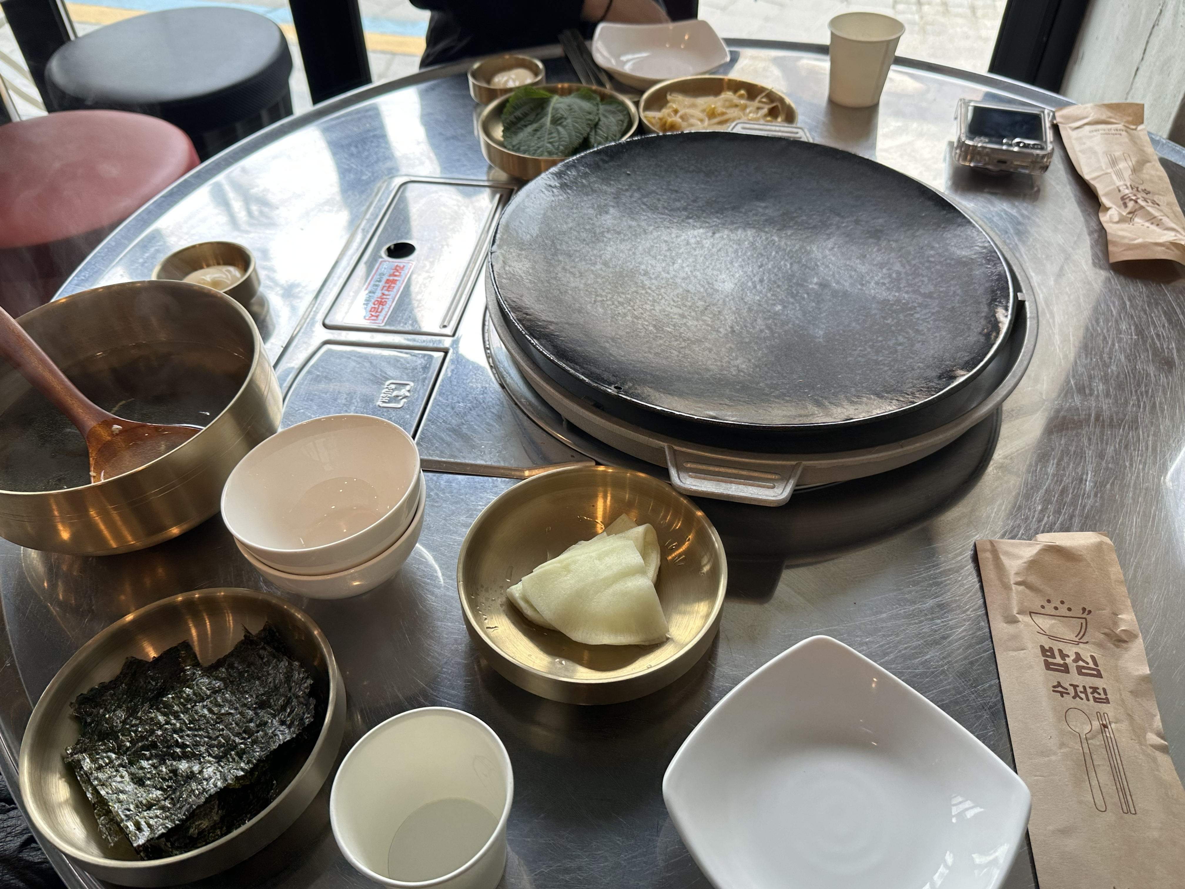 우리는 배가 너무 고파서 바로 고기도 올려버렸습니다 😂