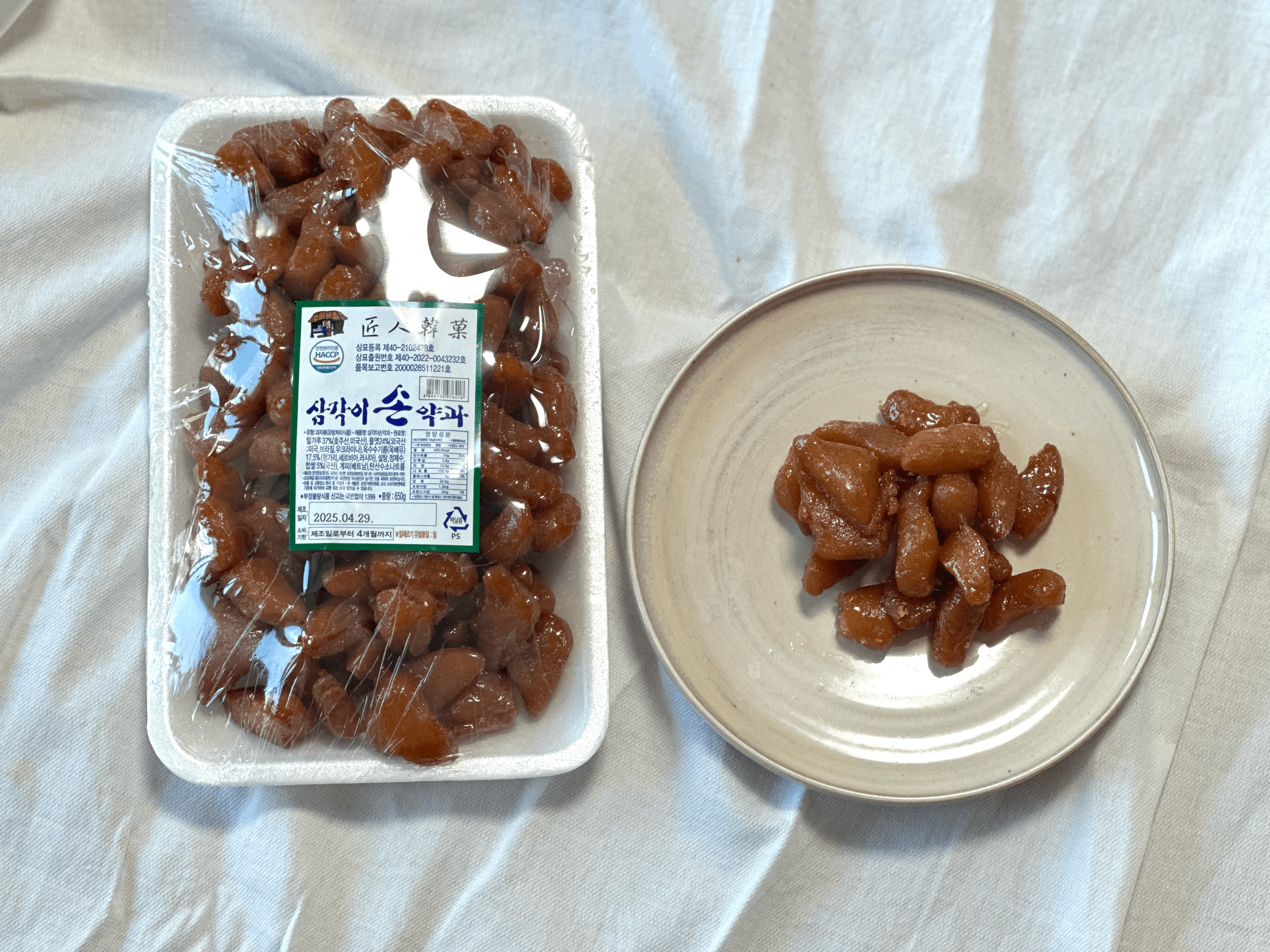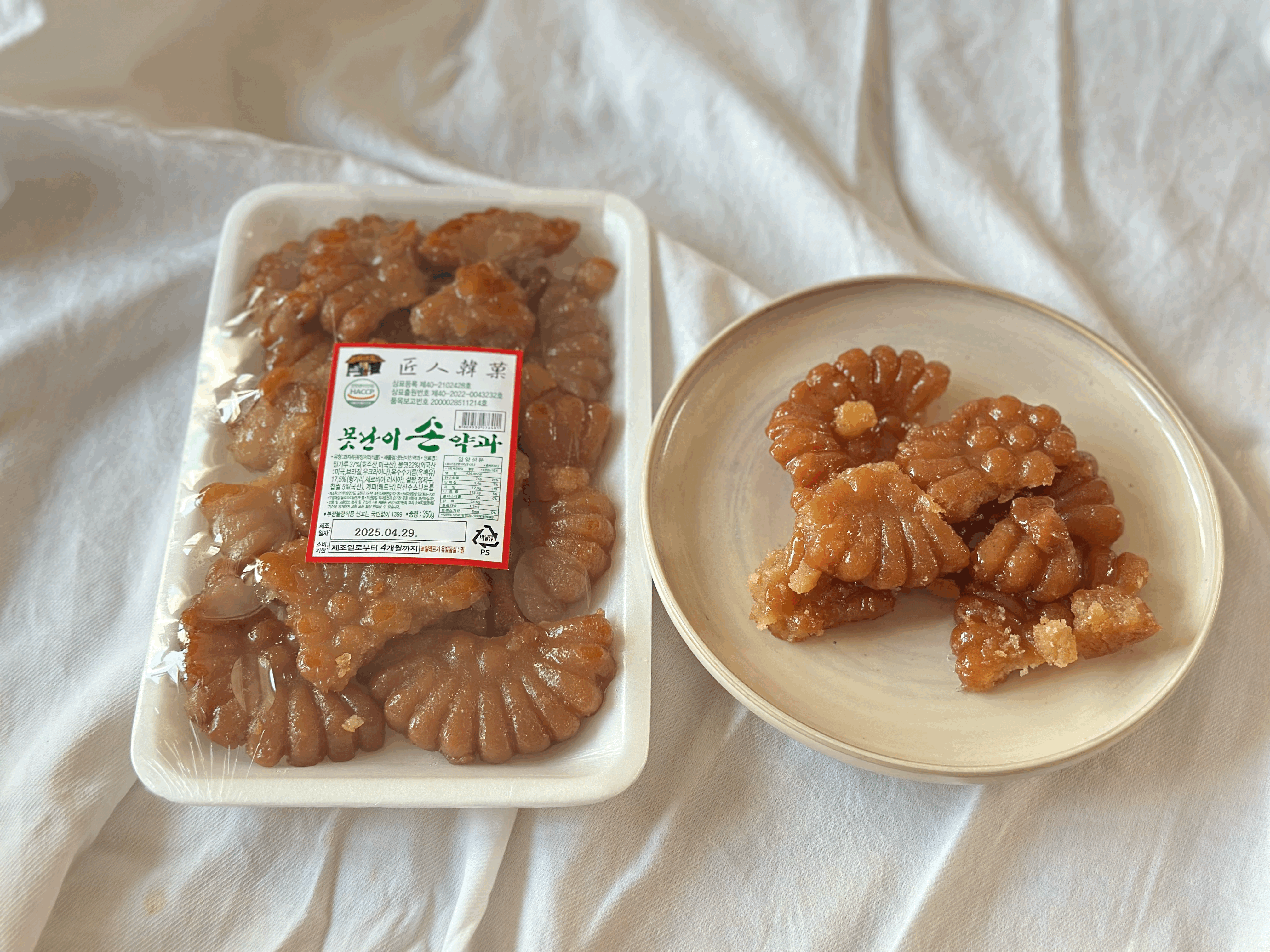 한입에 쏙 들어가는 사이즈라 먹기 편하고, 바삭한 식감이 더 잘 느껴지고 다른 약과들과 다르게 기름이 안느껴져서 너무 맛있었어요 (못난이 약과도)
