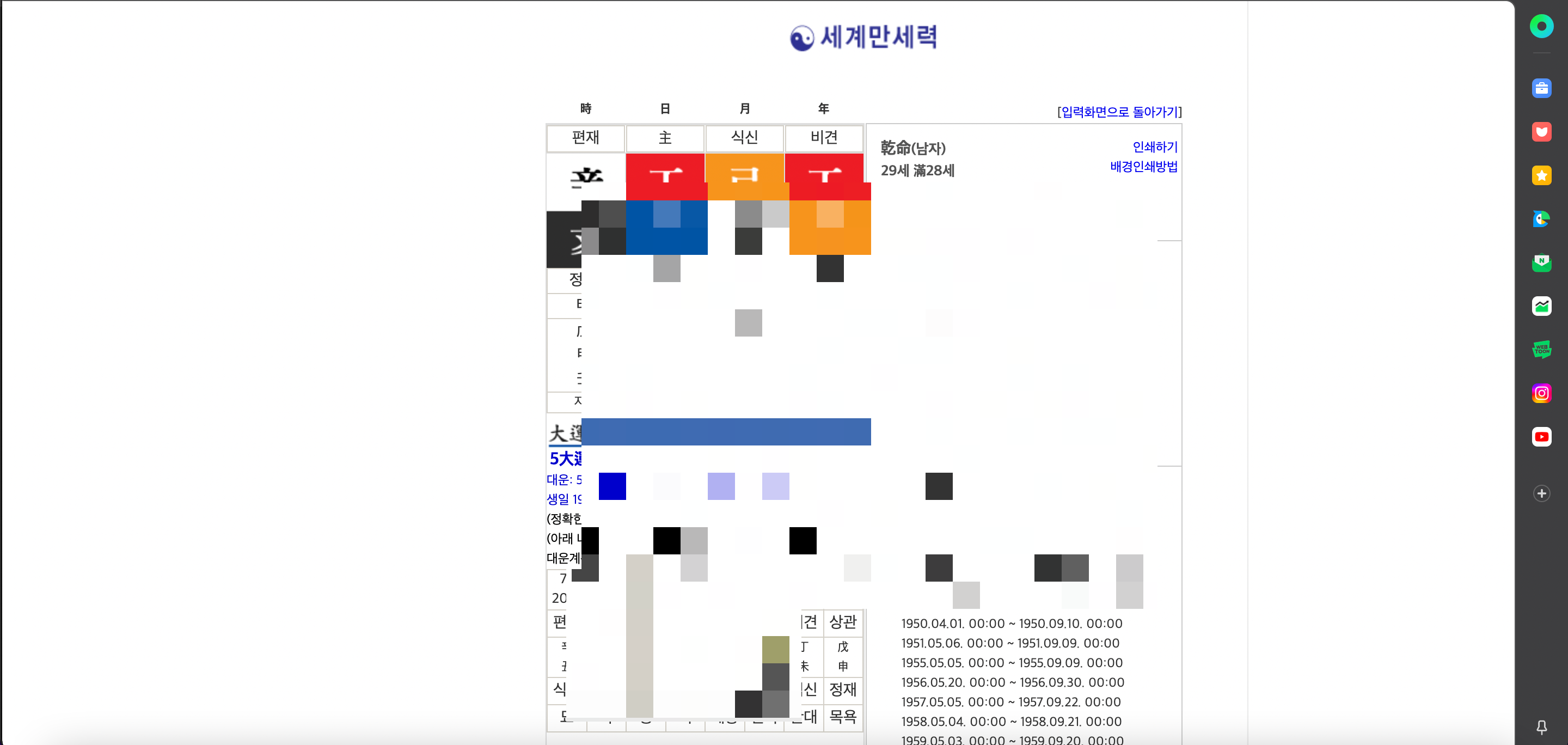1. 포털에 “무료 만세력” 검색